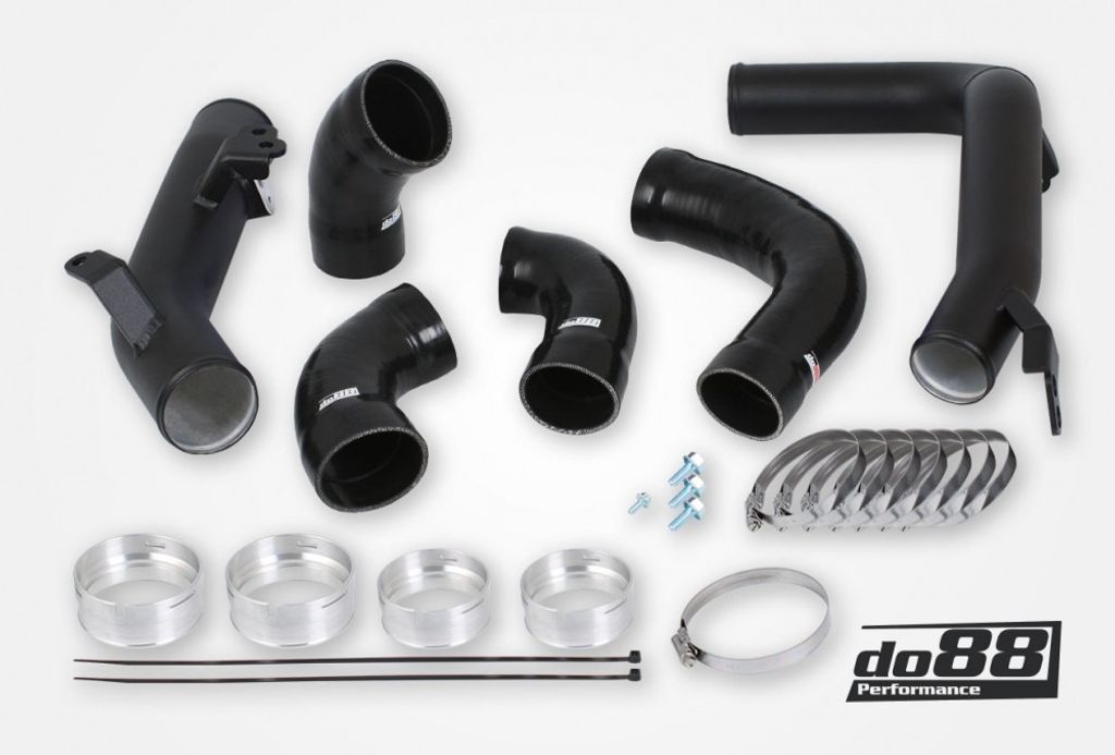 Tryckröret är utvecklat för dig med höga effektmål eller som vill säkerställa optimal prestanda och driftsäkerhet även vid uppgraderad mjukvara. Konstruktionen i 63 mm (2,5") extruderat aluminium är dornbockad för exakt passform och ger upp till 53 % bättre flöde än originalrören, verifierat både i bil och i flödesbänk. De specialdesignade silikonslangarna har fyra lager polyester-/aramidarmering för att klara mycket höga temperaturer och tryck. Systemet levereras komplett och är en direkt ersättning utan modifiering – en robust och effektiv lösning för stabilt laddluftflöde och lång livslängd.
