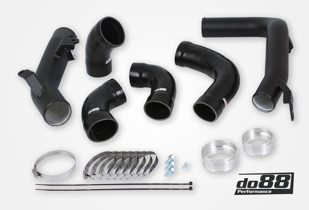 Tryckrör i aluminium för Volvo S60, V60, XC60, V90, S90 och XC90 T8. En premiumuppgradering utvecklad för bilar med performance-intercooler, där ökat luftflöde, hållbarhet och prestanda står i fokus. Levereras med silikonslang i färgen Svart.