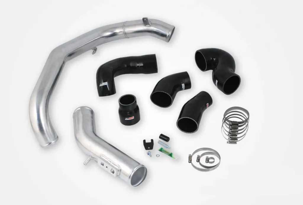 Detta tryckrör är framtaget för förare med höga effektmål och krav på driftsäkerhet även vid höjt laddtryck eller mjukvaruuppgradering. Rören är tillverkade av extruderat aluminium i dimensionerna 2,5"/2,75" (63/70 mm) och har dornbockats för perfekt passform i motorrummet. De medföljande slangarna är tillverkade i 4-lagers polyester-/aramidarmerad silikon, vilket säkerställer stabilitet och lång livslängd även under höga temperaturer och tryck. Systemet är en direkt ersättning för originalet och kräver ingen modifiering vid installation.