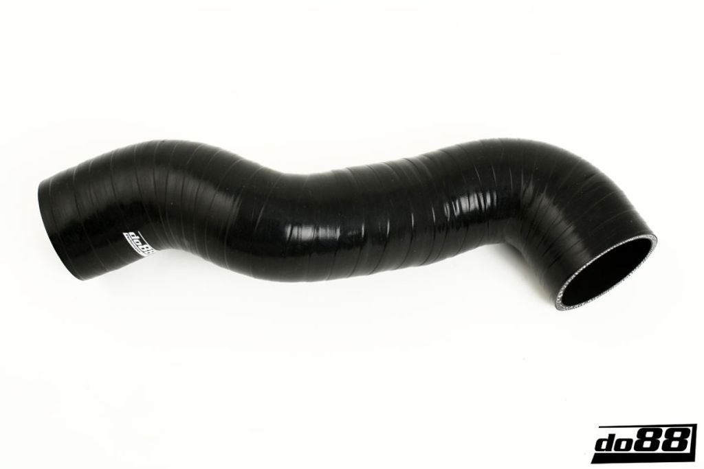 Svart silikonslang mellan intercooler och insug till Volvo D5 2.4D (05–09) – utvecklad av do88 för att ersätta originalslangen med förbättrad hållbarhet, trycktålighet och passform.