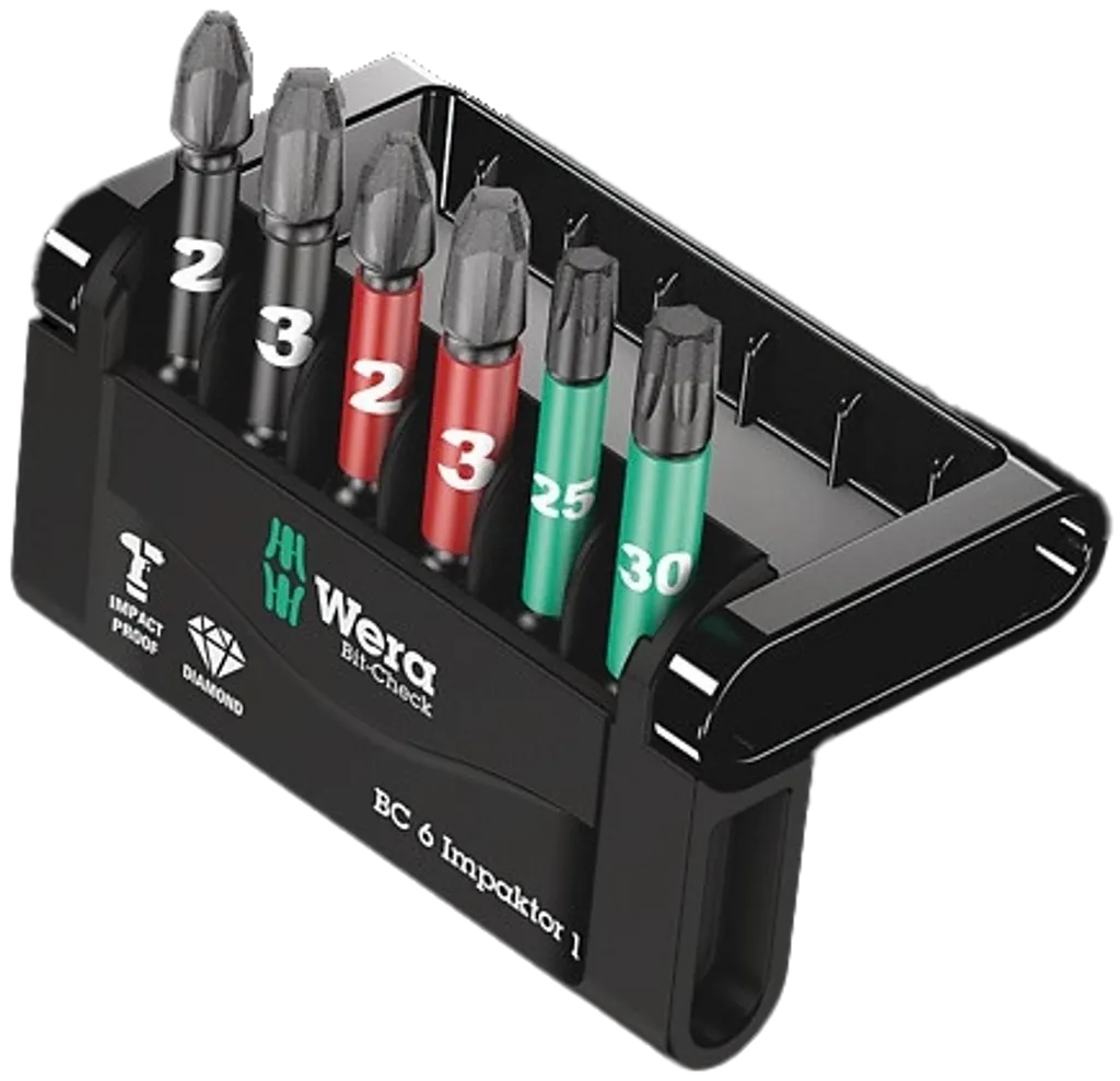 WERA Bit-Check 6 Impaktor 1, PH PZ TX bits WERA, Impaktor bits diamant, WERA bitssats slagskruvdragare, slitstarka bits för proffs