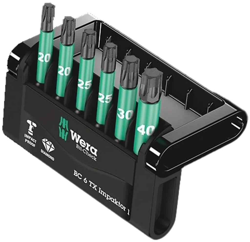 WERA Bit-Check 6 TX Impaktor 1, TORX® bits TX20 TX25 TX30, Impaktor bits WERA, diamantbelagda TORX®-bits, professionell TX-bitssats