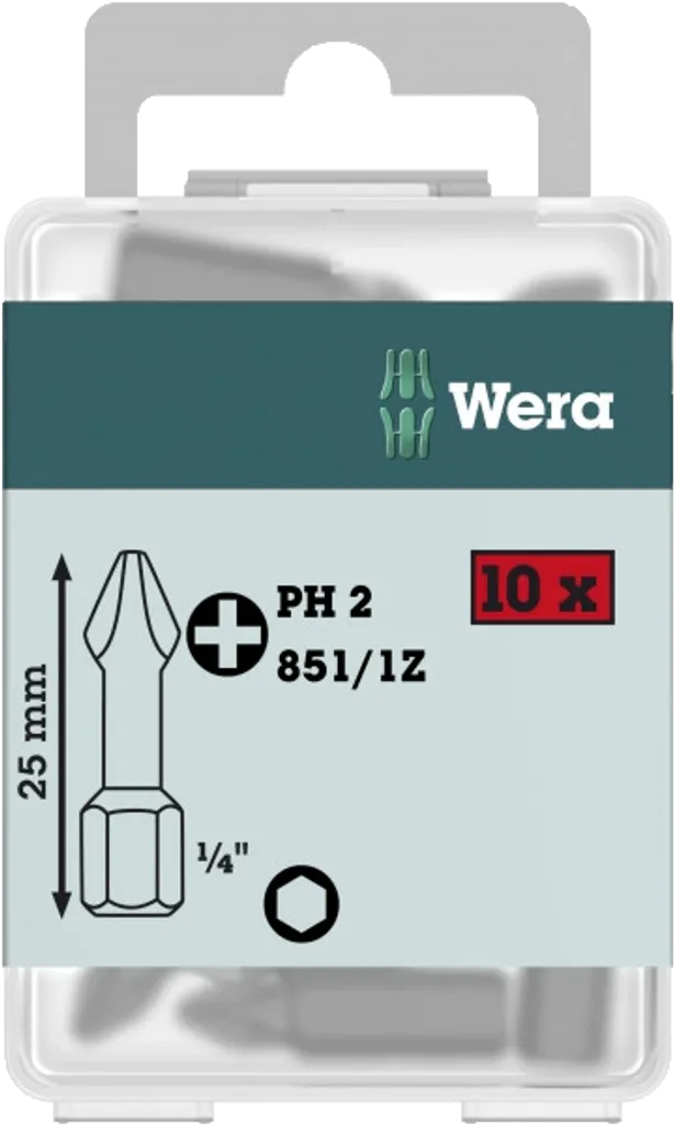 WERA Classic Bits 25 mm är premiumbits för professionell och effektiv skruvdragning – levererade i smarta 10-pack DIY-Boxar för enkel förvaring och användning.