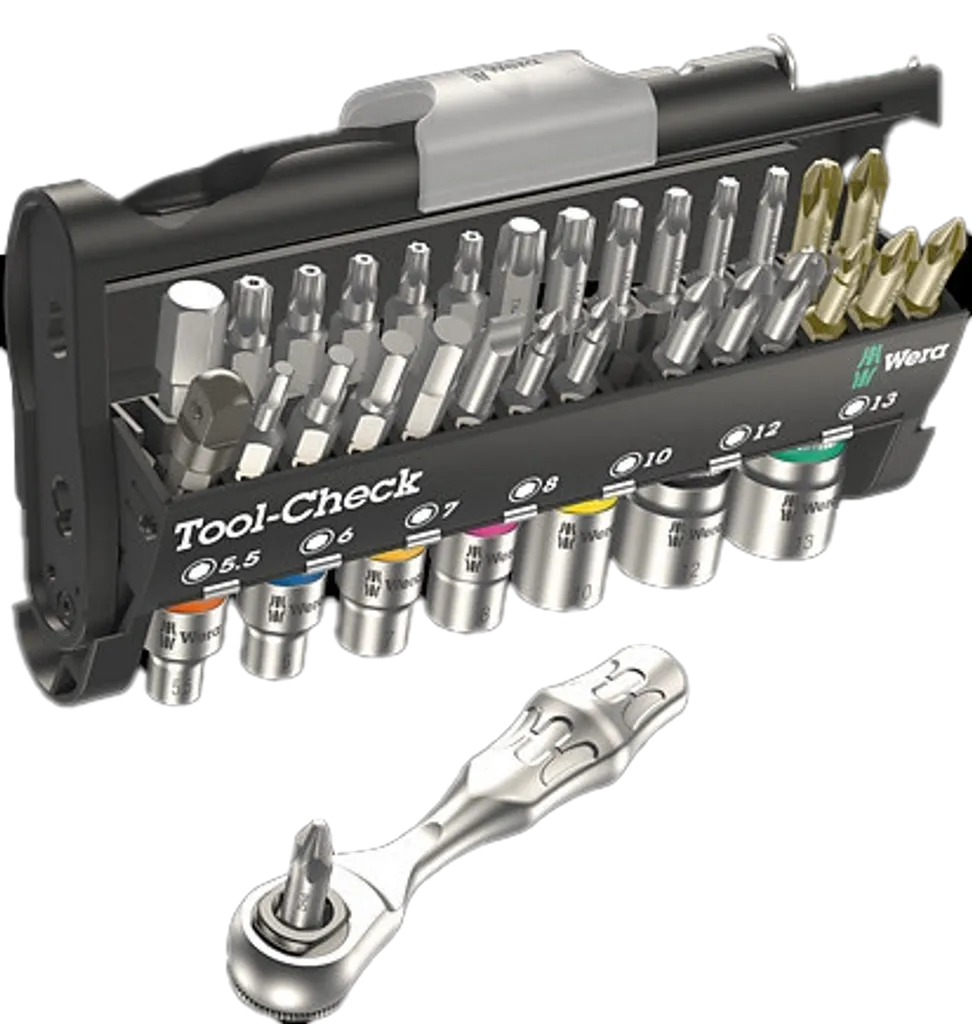 wera tool-check 1, wera bitsats, kompakt verktygssats, spärrnyckel med bits, wera hylsnyckelsats, trendab