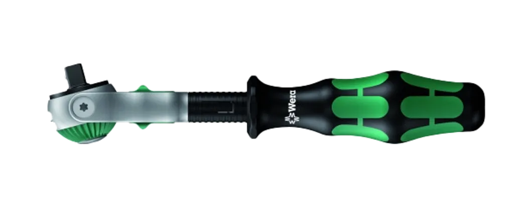 WERA Zyklop Ledbart Spärrskaft ger dig maximal flexibilitet tack vare sitt låsbara ledhuvud och snabba spärrmekanism – perfekt för arbete i trånga utrymmen.