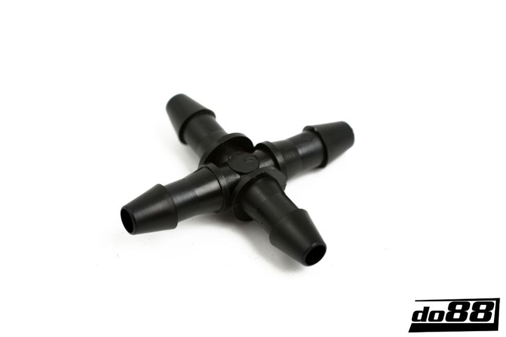 x-koppling 4mm, slangkoppling kors, fyrvägskoppling 5/32 tum, plastkoppling 4mm, vakuumslang koppling, bränsleslang korskoppling